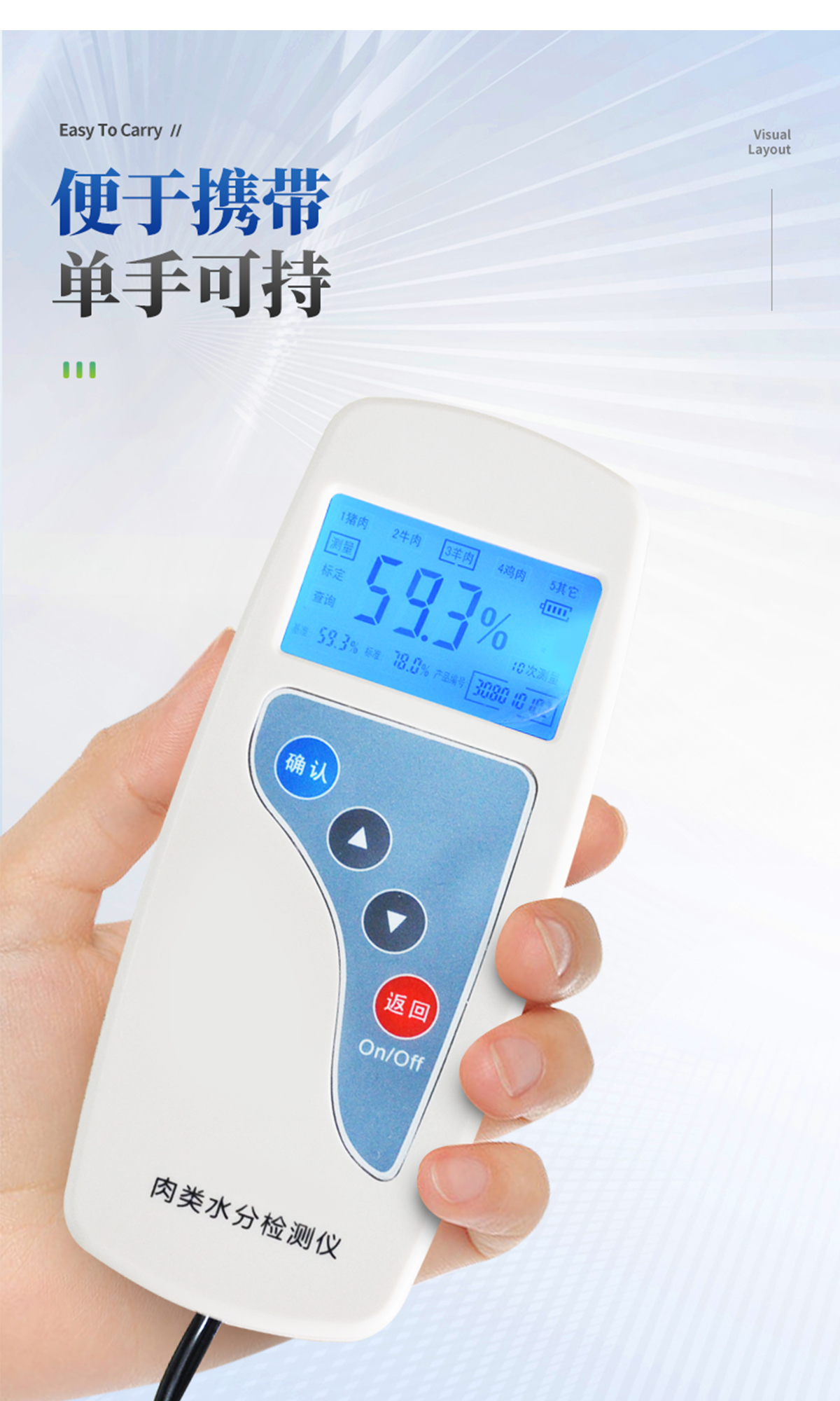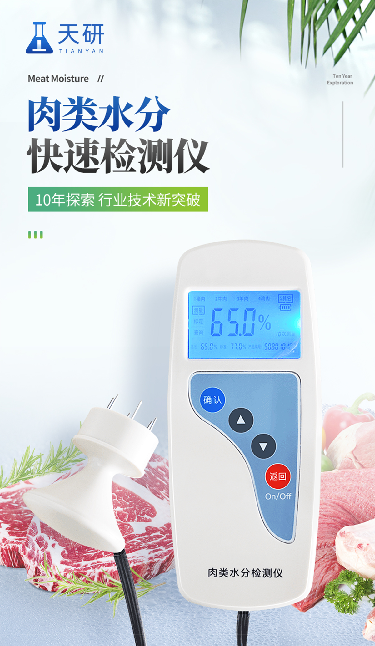 肉類水分檢測儀主要用于快速豬肉、牛肉、雞肉等動物肉類水分含量,從而判斷所測樣品是否為注水肉,該儀器設(shè)計精巧,單手可持,儀器可根據(jù)測定對象的品種,設(shè)定相應(yīng)的判斷標(biāo)準(zhǔn)值。